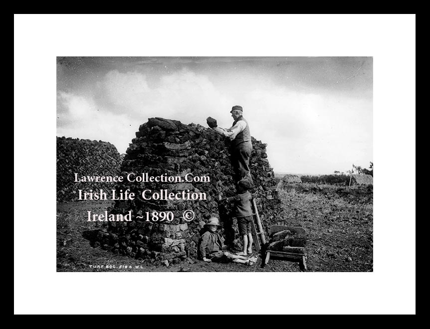 The Lawrence Collection is a collection the photos taken between the years of 1870 – 1905 of Ireland , Browse this collection to find a photo of Your Town ~ Village ~ City from 19th Century Ireland. I have 7 photos of Gathering the Turf from the Lawrence Collection.